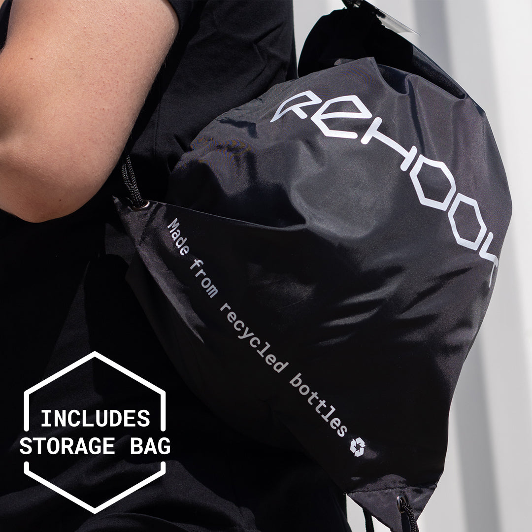 - Comes with a storage bag made entirely of recycled plastic bottles!