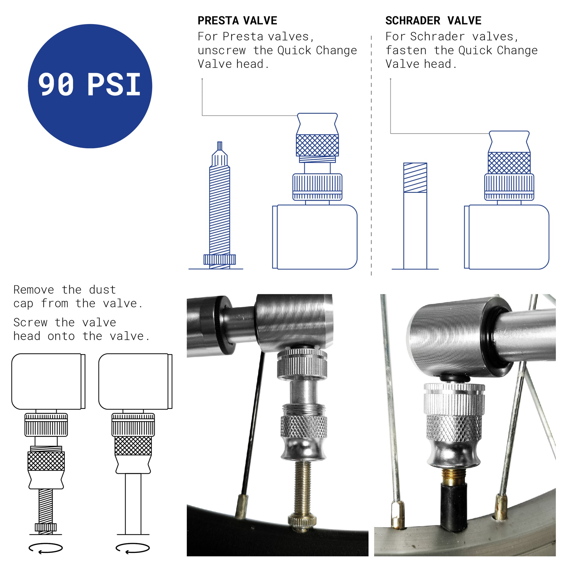 - Rehook AIR universal bike pump - Presta and Schrader valve heads