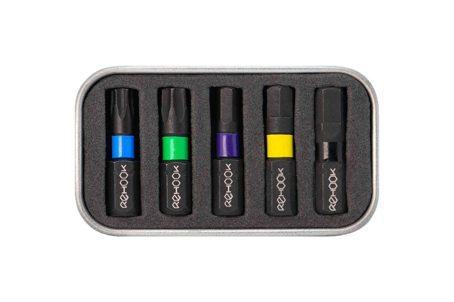 Add a full set of heavy duty impact tool bits that are curated just for cyclists. The extra tools include: H4, H5 & H6 Hex/Allen keys and T25 & T30 Torx, as well as the PH1 screwdriver.