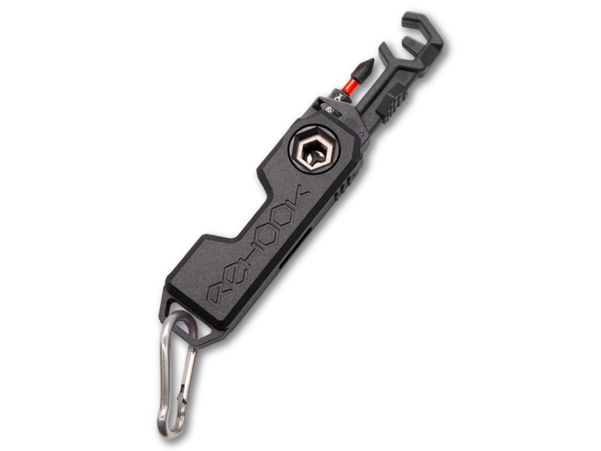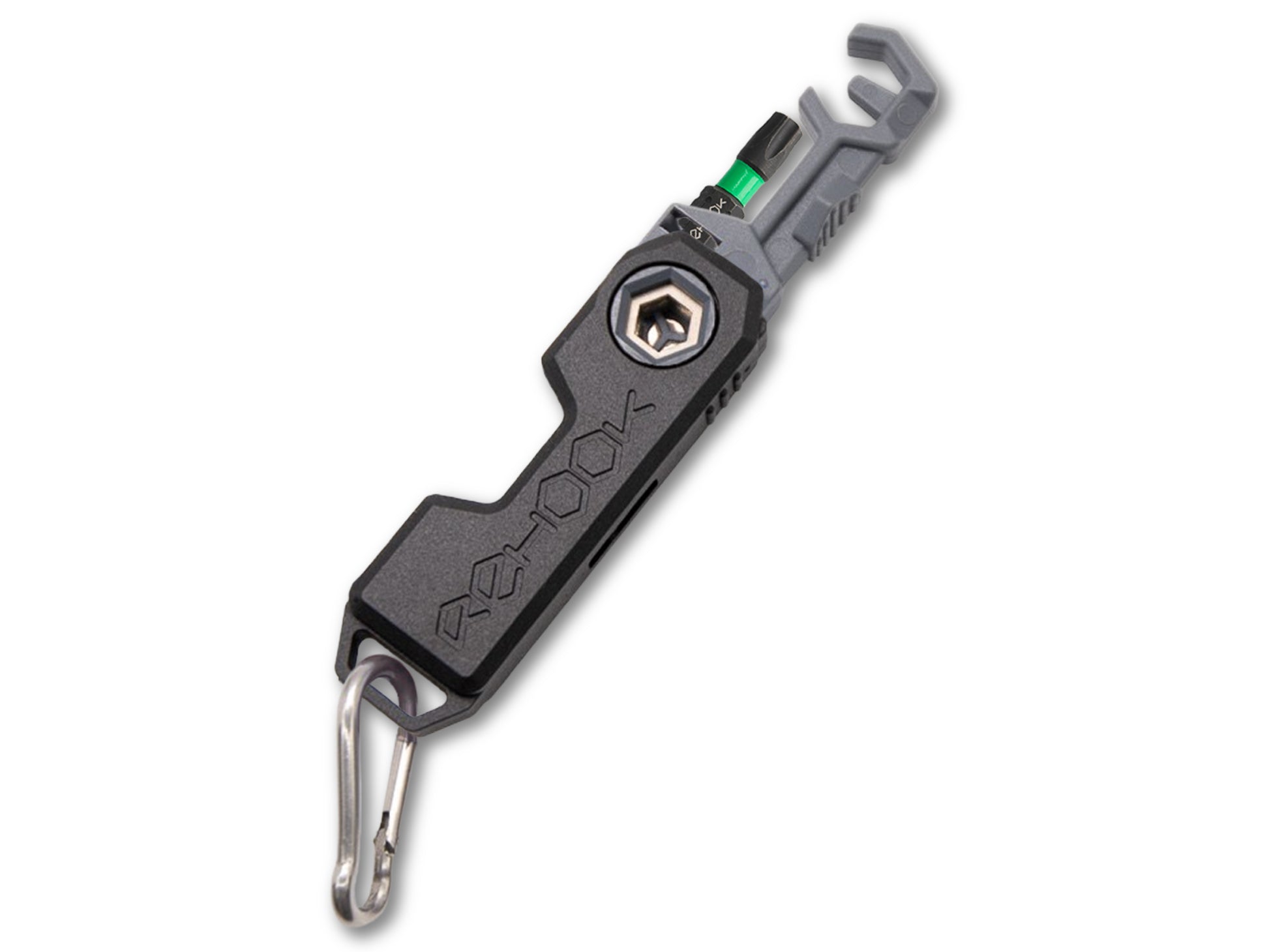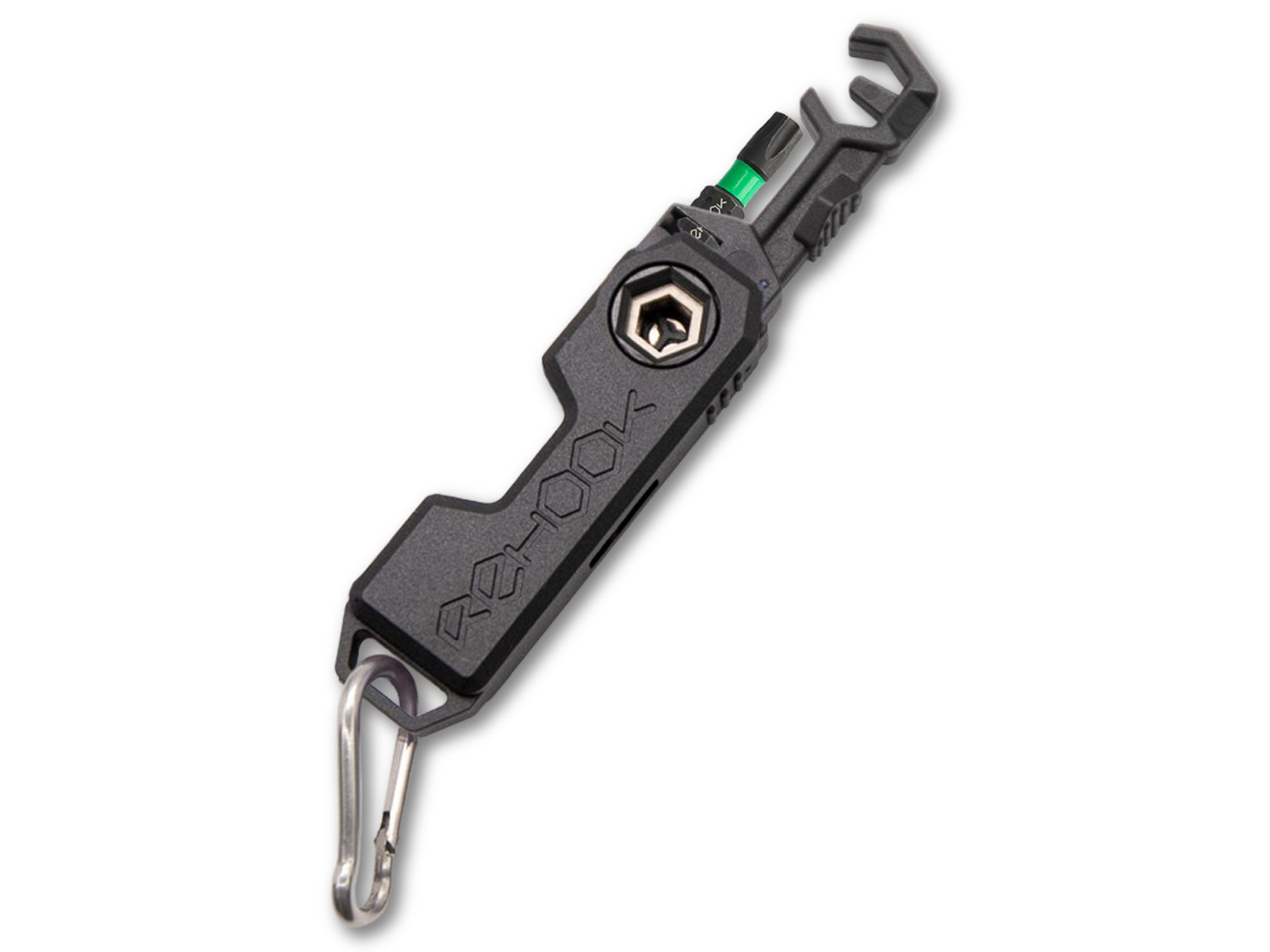 Rehook mini folds open to reveal a S2 Steel PH1 Phillips screwdriver attachment, as well as the patented Rehook tool head. Ideal for a range of roadside adjustments and getting your chain back on your bike - without the mess.