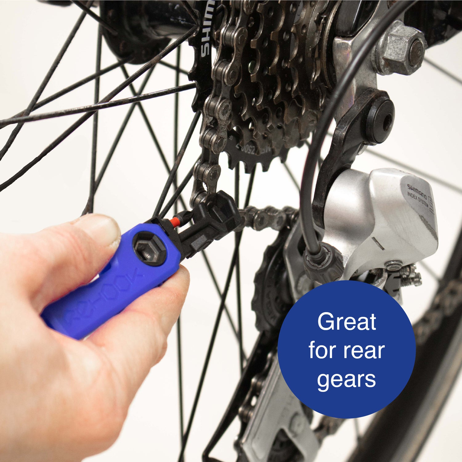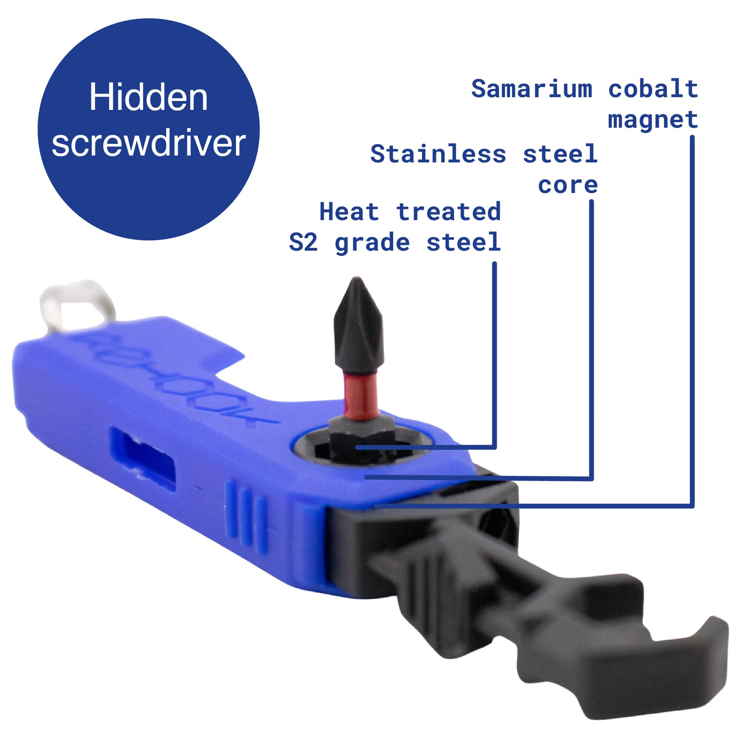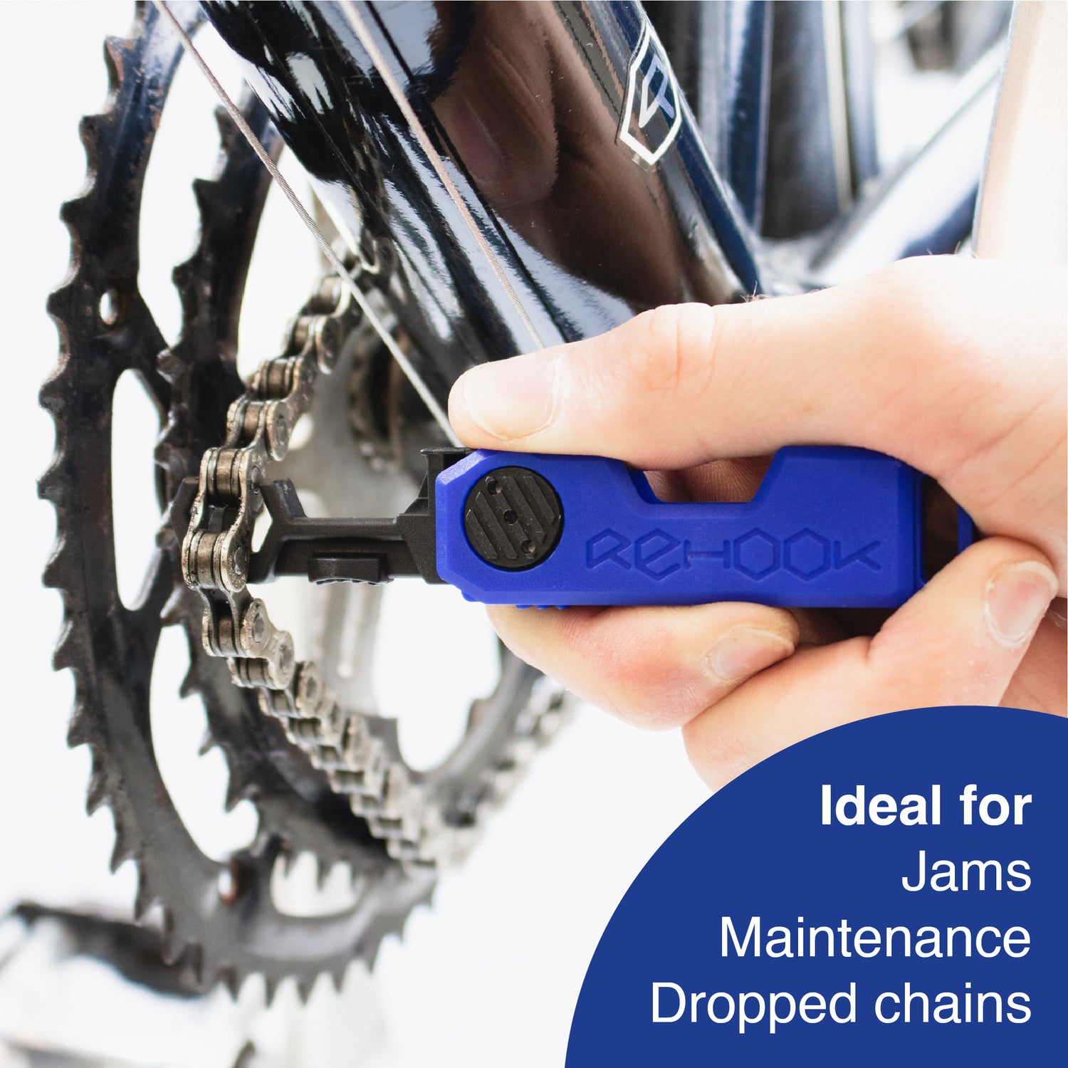 Rehook mini folds open to reveal a S2 Steel PH1 Phillips screwdriver attachment, as well as the patented Rehook tool head. Ideal for a range of roadside adjustments and getting your chain back on your bike - without the mess.